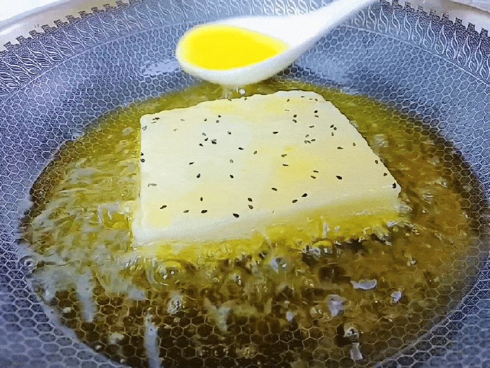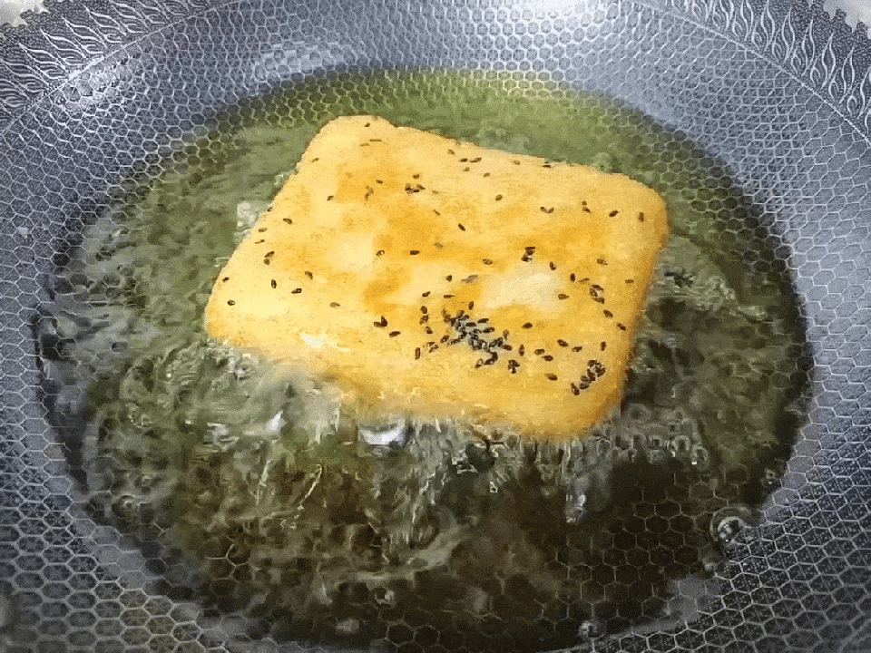 2、炸糯米糕的时候中小火慢慢炸,千万别炸糊了。
