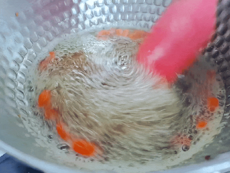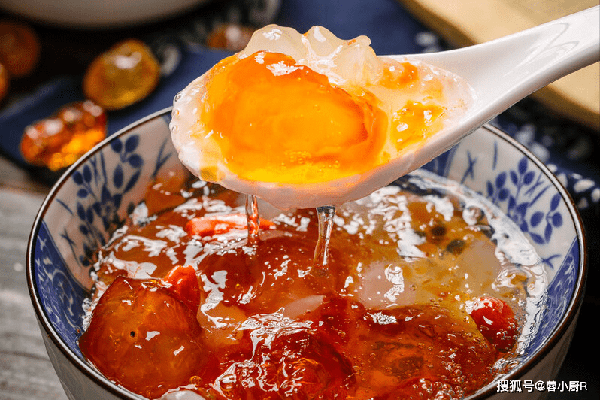 2、接着加一把枸杞,少许淀粉水,搅拌均匀后就可以关火了,糖浆就熬好了。