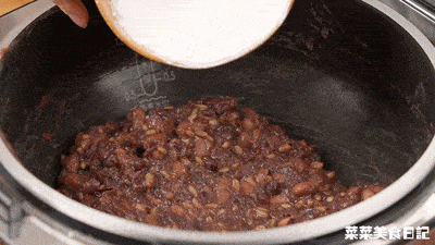 4.煮好的豆子加入30-50g細砂糖碾碎。