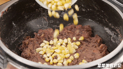 6.最後倒入紅棗碎、糯玉米翻拌均勻·紅棗能提供甜味,所以細砂糖可以適當减少。