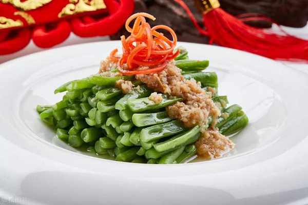 准备材料如下:四季豆300克、蒜、姜、干辣椒、盐、食用油
