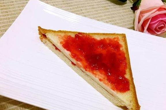 面包上抹上自己做的草莓果酱,早餐来上一份儿,方便快捷省事!