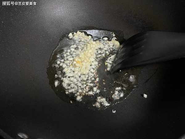 3、再放入一些蒜末,翻炒均匀,香味扑鼻,盛出来,就完成了。