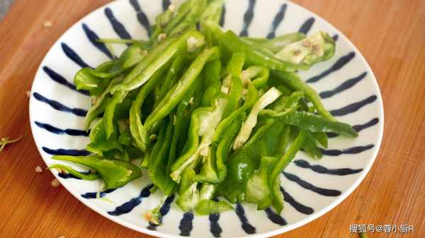 2、青椒切成长条备用;