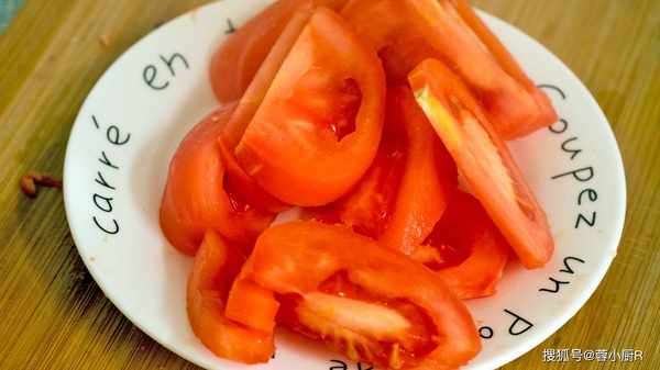 1、西红柿划十字口,放入开水中稍微烫一下,捞出后去皮,切成块备用;