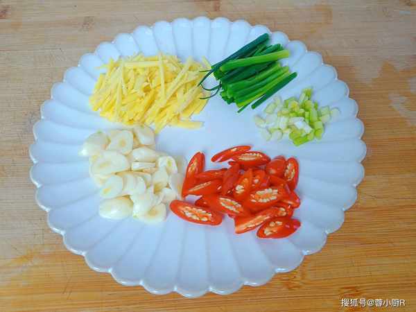 1、生姜一块,洗净后切姜丝,小葱2根,切葱段儿,小米椒2个,切成小圈圈备用。