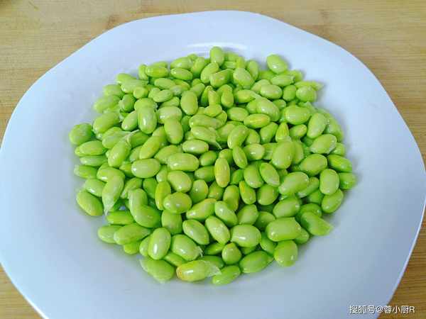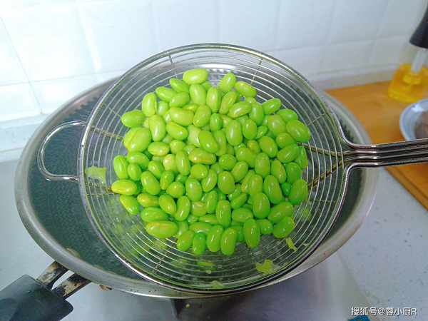 2、想要毛豆煮熟后颜色同样翠绿好看,加食用油这一步千万别忘记哦!毛豆煮熟后捞起来沥干水分备用。