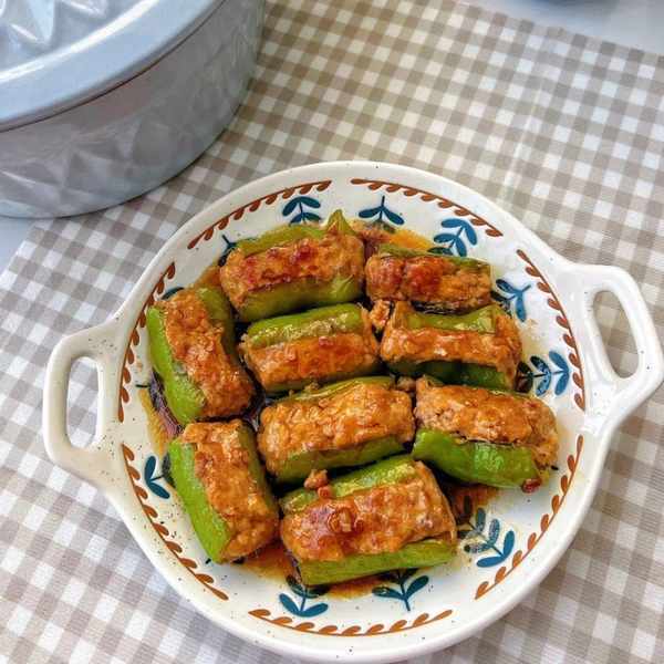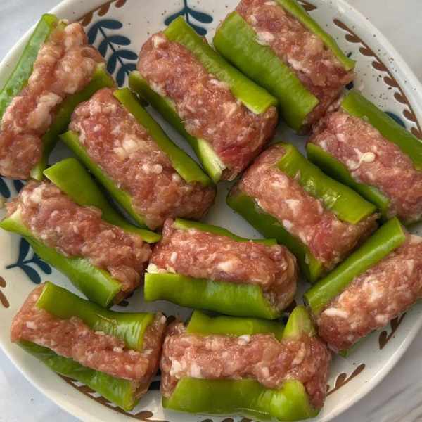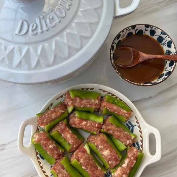 做了想吃了很久的虎皮青椒酿肉,这也太下饭了吧!青椒和肉的搭配真的太绝了,一定要多蒸点米饭?!过节或者来客人,端上桌好吃还好看~