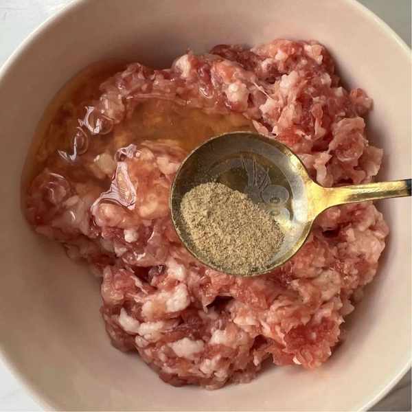 1. 猪肉绞成肉馅,打入1个蛋清,加适量白胡椒粉、1勺生抽(调味)、1勺料酒(去腥)、1勺蚝油(提鲜),搅匀后腌制半小时。