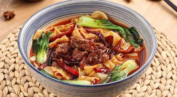 贵族牛肉板面果然名不虚传,丸子、豆皮、香肠、鱼棒、金针菇、鸡蛋、鸡腿,那叫一个豪华,宽又筋道的面条,牛肉鲜汤,深红辣椒外加小油菜。