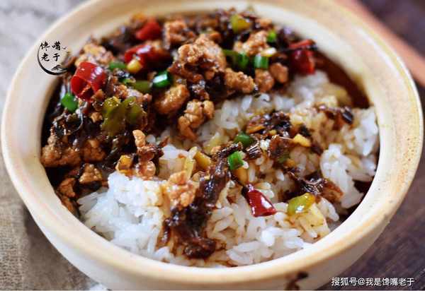 食材:大米、梅干菜、里脊肉、生抽、香醋、蚝油、干辣椒1个,小葱、大蒜、盐、香油