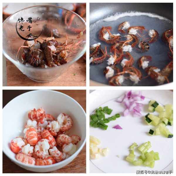 步骤一:首先,把大米淘洗2遍后放入电饭煲,按蒸饭键。蒸米饭的期间把小龙虾冲洗两三遍后去掉虾头,接着冷水下锅,加入2茶匙料酒,大火煮至断生后捞出,稍微放凉时,去除小龙虾肉备用。