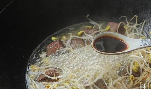 【材料】:猪血1块、黄豆芽1把、胡椒粉1汤匙、盐1茶匙、酱油1汤匙、蒜葱适量