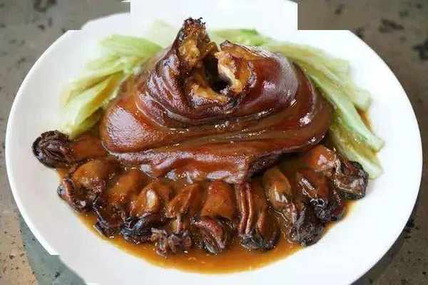 土猪圆蹄一只(1.5kg),25头金蚝1斤,生菜8棵、老抽、姜、葱、陈皮、香叶、八角、盐糖、味粉、汤水。