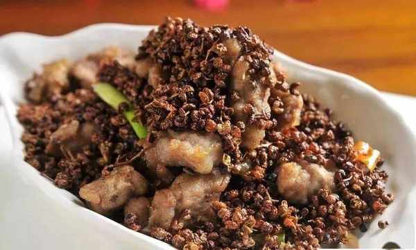 这道菜与传统的蒜香骨相似,但是辅以大量汉源花椒炒制,从而使排骨麻香可口。