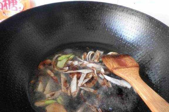 2,炒锅入油,煸香葱姜丝,倒入生抽一汤匙,倒入切好的辣椒翻炒。