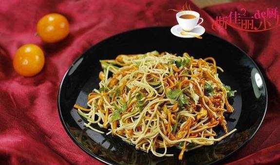 今天就买了些虫草花回来,家里还有些干丝,就搭配在一起来道简单的凉拌菜。干丝是种豆制品,蛋白质含量丰富,常吃还能补钙还能防止骨质疏松,是老少皆宜的补益佳品。加入了点绿油油、香气扑鼻的香菜,再搭配上金黄的虫草花,就能做出这道既营养丰富又口味鲜香的凉拌菜。快来试试吧。