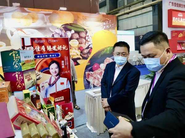 参展企业佳佳美是道滘土知名食品企业,是本土传统美食生产的知名牌,该公司的裹蒸粽制作工艺获得广东省非遗保护。他们此次不但带来了传统的特色食品,也还带来了新开发的产品。据佳佳美员工介绍:他们这次带来的主打产品是粽子,这是道滘的名片。此外还带了糕点系列,是今年主推的,其销量数据跟预制菜品一样,每年的销量都在上升。