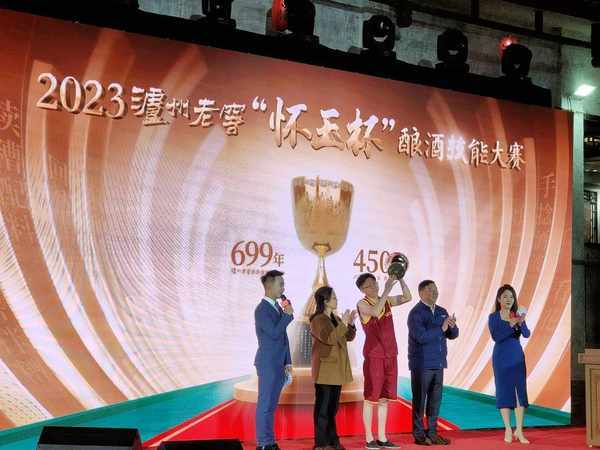 24日上午,2023泸州老窖“怀玉杯”酿酒技能大赛在1573国宝窖池群举行,四川绵阳小伙、刚大学毕业两年多的泸州老窖国窖班的酿酒工何先强,从一千多名酿酒工中脱颖而出,挑战前两届擂主马冲成功,成为新一届擂主。