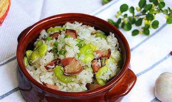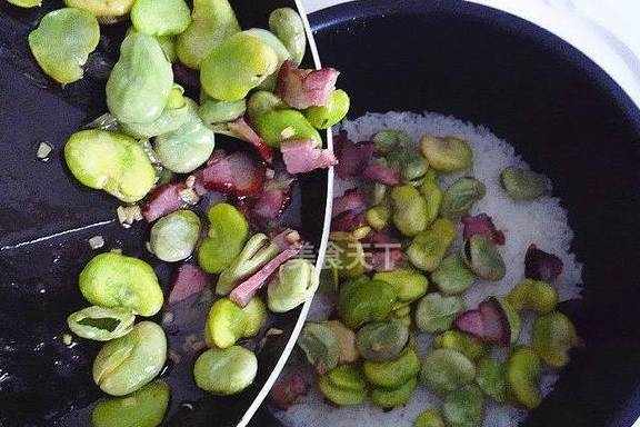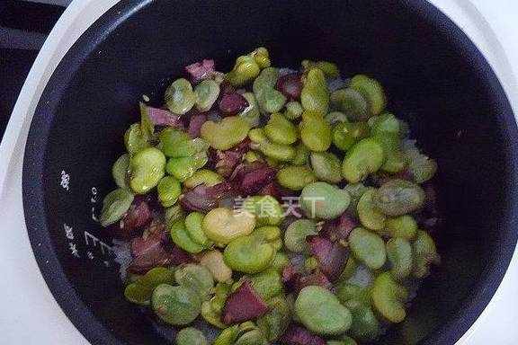 也可以把腊肉和蚕豆和大米一起煮熟,但是蚕豆会变黄。