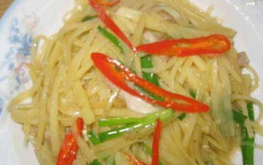 食材:辣椒,大葱,油,盐,土豆(土豆切丝切的越细炒出来的菜就越好吃,越入味)