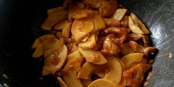 食材:春笋,里脊肉,生抽,老抽,盐,料酒,胡椒粉,油,蒜,清水,鸡精。