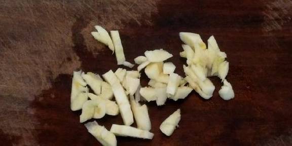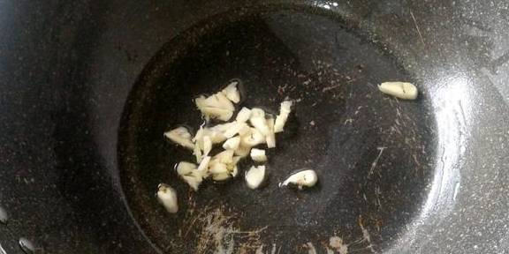 把剩下的油加热,倒入蒜,煸炒出香味。