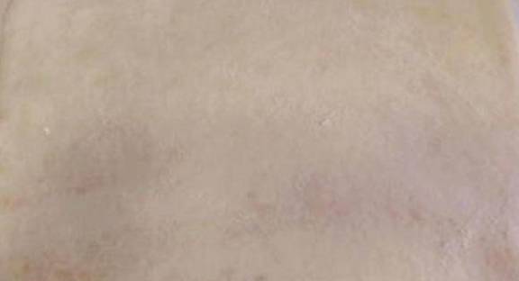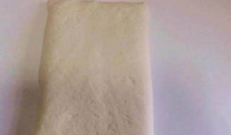 对折成正方形后,用擀面杖擀成薄薄的面皮,然后再重复上面的过程,重复三次就可以了。