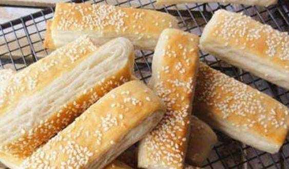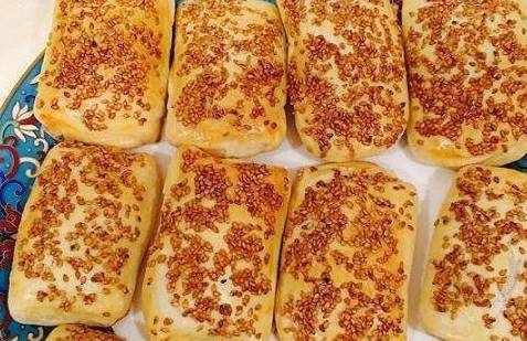 布满芝麻的千层饼色泽诱人,和小面包一样。用来做小零食和早餐都是很好的选择,切成小小的形状孩子吃很方便。