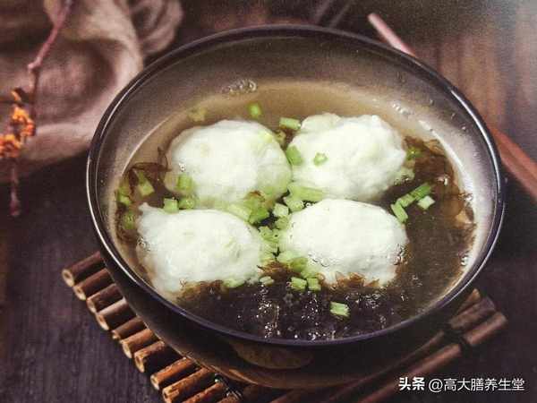 6.取另一锅,加入鸡汤、鱼胶丸子、盐,烧开后加入紫菜与芹菜粒,待水再次煮开,盛出即可。