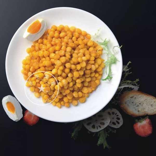 熟玉米粒200克、熟咸鸭蛋黄2个。