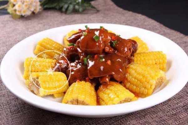 烹饪要点 加工猪手焯水后一定要炸一下这样可以减轻毛腥味也提高了成熟度,用鲜糯玉米口感最佳。