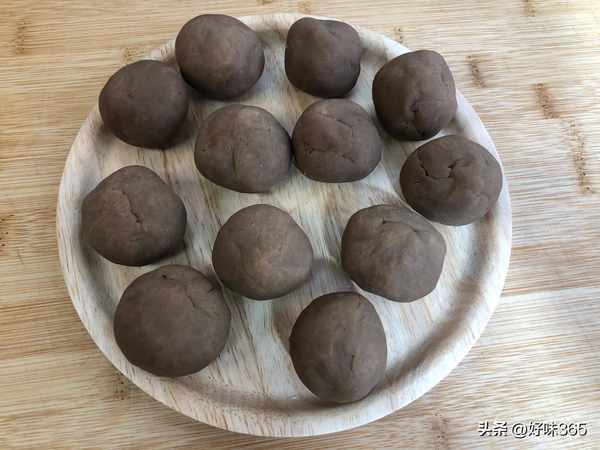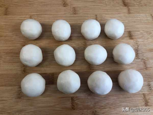 5.搓成团,一共12个,备用。这样,所有的准备工作就做好了,中式点心制作主要是油皮、油酥、内馅的准备工作比较费时间,大家可以提前准备好,这样比较轻松些。