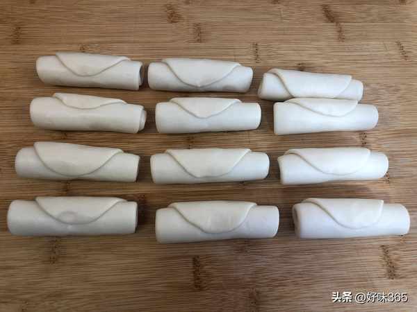 12.最后是包馅,将小卷两头向中间按压,并按扁。