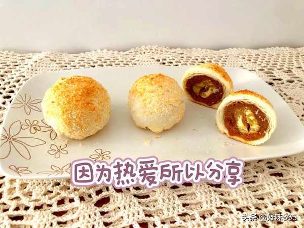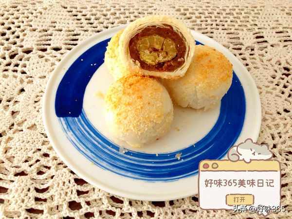 1.这款栗子酥成品非常好吃,面皮酥松、内馅是绵细香滑的栗子泥还有一整颗糖渍栗子,吃起来超满足;最外面还沾满的一层椰蓉,可以说是把好吃的单品都组合在一起了,喜欢吃栗子的、椰蓉的、酥皮点心的朋友一定不要错过,推荐试一下哦!