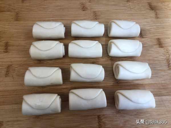 6.将松弛好的油皮和油酥,分别均匀分割成12等份,搓揉成团,并盖保鲜膜防干。