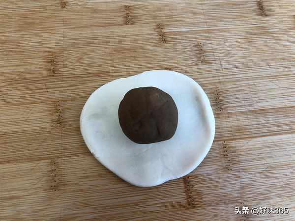 13.稍微擀成圆形面皮,包入一个内馅。