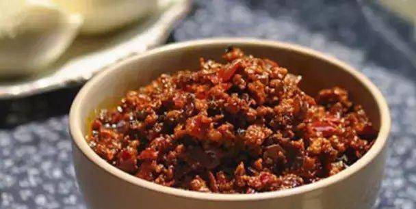 4、牛肉酱盛出后倒入香麻油浸没肉酱,放凉后装到密封的玻璃瓶中。