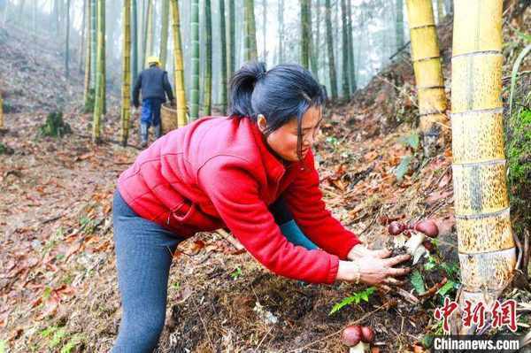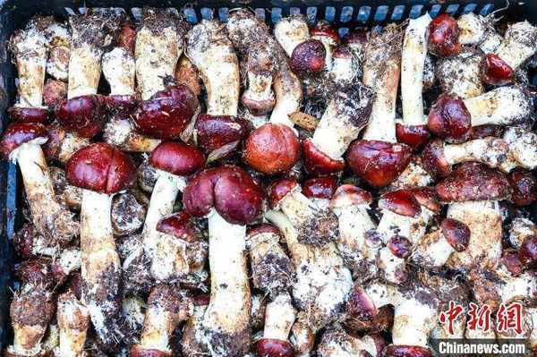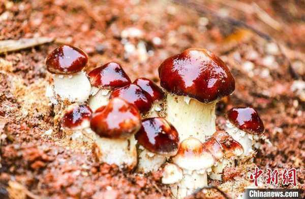 连日来,四川泸州市合江县凤鸣镇金龙湖村高山竹林里,伴随春分时节的雨雾,一颗颗破土而出的赤松茸鲜艳欲滴,成为人们餐桌上最喜爱的美食。