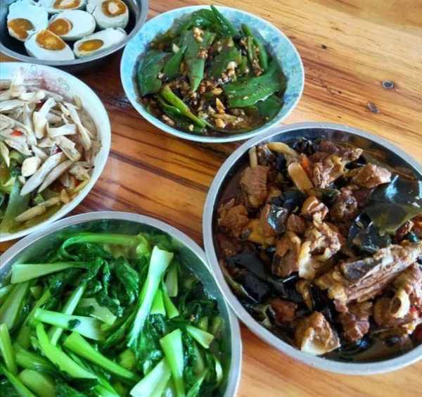 厂里工人不到十人,所以陈丽婷的要求是菜的分量要足,米饭要管够,最好多做下饭菜,让他们吃饱。阿姨拿着菜钱自己安排,每天准备的饭菜看上去还不错。小炒肉是用五花肉切成片和辣椒一起爆炒,因为加了青蒜,所以特别香,感觉很下饭。还有一个咸菜炒腊肉,腊肉和咸菜都切成丝,这样方便入口,咸香可口麻辣入味,很是开胃。最后一个炒土豆片一个清炒白菜清清淡淡很爽口,配上阿姨自己做的霉豆腐,直接可以干完两大碗米饭。
