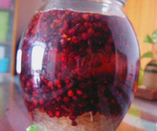 2、五味子用清水洗净后,加入清水半碗和枸杞子,用小火炖20分钟左右,捞出五味子(因为五味子味微苦,但可以保留),加入冰糖和盐调味,再加入少许淀粉勾芡,即成五味子酱。