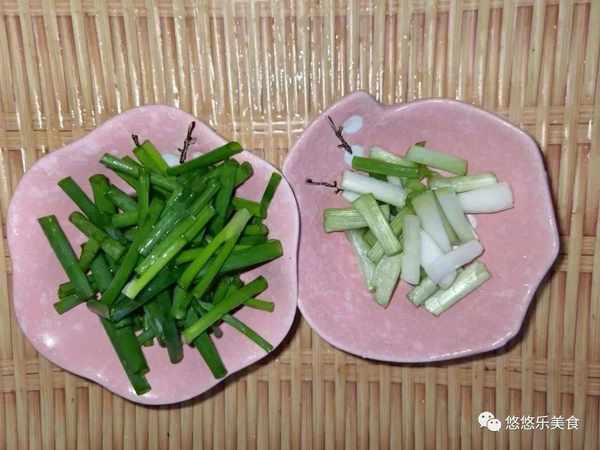 小葱洗净,然后切成细段,切好后的葱花跟葱段要分别放。辣椒洗净,切成细段。