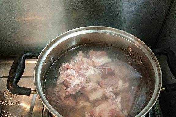 3.牛肉洗净冷水下锅焯水,烧沸后撇去浮沫。