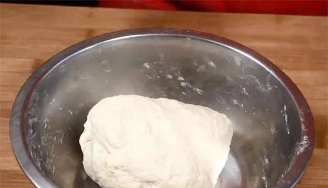 2.先来和面,盆里加入两碗面粉、一勺小苏打、一勺泡打粉、适量的食盐,加入温水进行和面,把面揉至表面光滑的时候,盖上盖子醒面半个小时,在这里有一点要注意,和面时尽量要用温水和面,这样面发酵比较快。