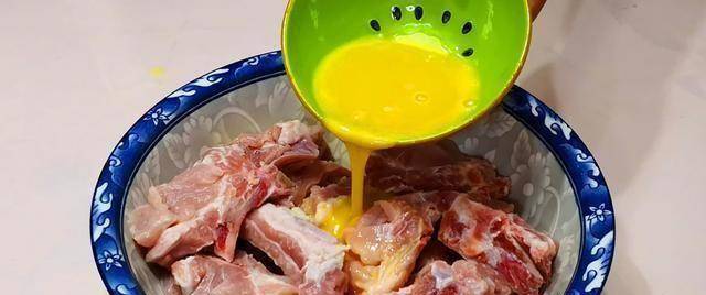 排骨洗净后,控水再次放入盆中,然后将鸡蛋打成蛋液,放在排骨表面,看蛋液呈金黄色,看来鸡蛋的质量还行不错,当然营养也是很丰富的。