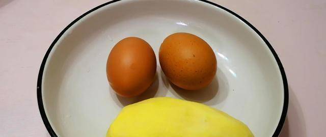 到场准备食材:两个新鲜鸡蛋,一个去皮的大土豆。
