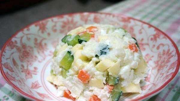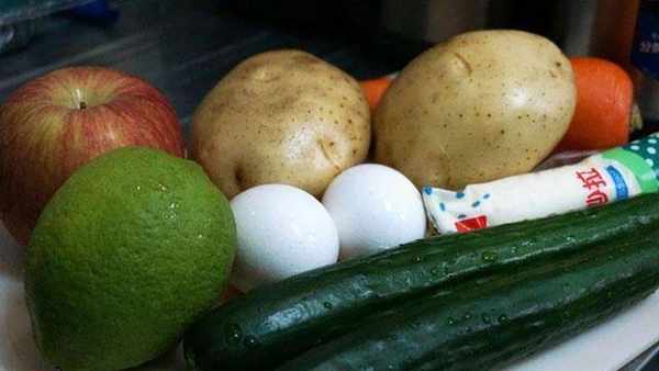 首先说一下需要准备的食材。苹果1个,土豆2个,胡萝卜1个,黄瓜2个,鸡蛋2个,柠檬汁适量,沙拉酱50毫升,盐1勺。当然,你也可以稍微调整自己喜欢的食材。