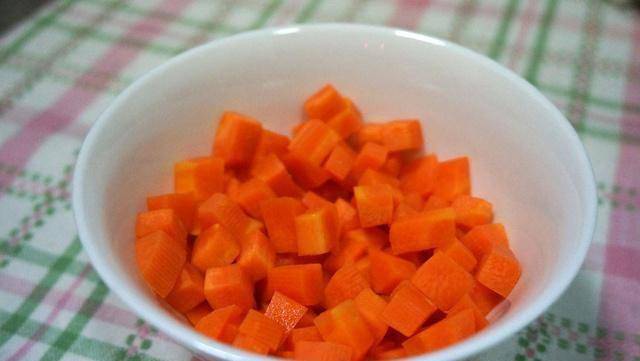 1、胡萝卜去皮切丁,土豆洗净,一起上锅蒸熟。