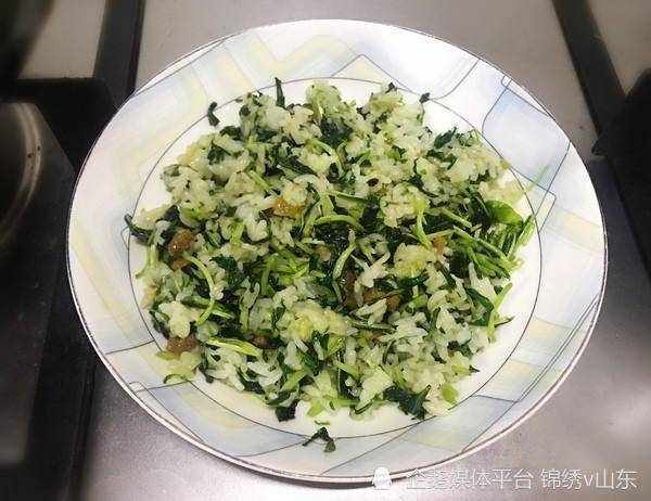 食材:马兰头100g,白米饭1碗,春笋半根,素香肠半根,油适量,盐适量