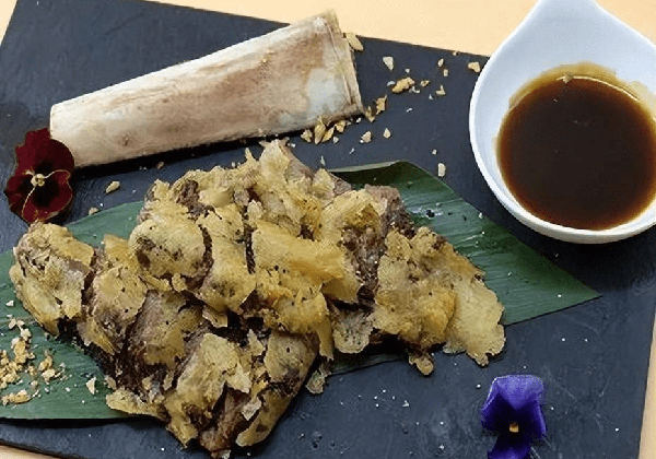 3、牛肋排待用,混合脆浆糊调匀裹上牛肋排,五成油温炸酥脆可改刀装盘完成。